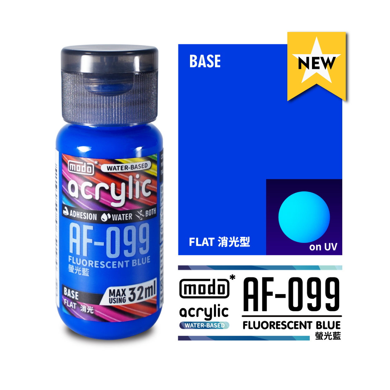 MODO acrylic 水性漆 AF-099 32ml 實螢光藍 消光